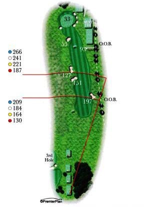 A classic dog leg par 4 with bunkers guarding the corner of the dogleg before an accurate approach is required to a green set in front of a copse of trees. A brave tee shot cutting the corner of the dogleg offers a better line into the green with greenside bunkers covering the approach from the right-hand side. Generally played into the prevailing wind a good drive on this hole helps enormously.